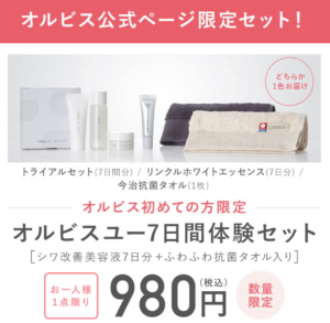 オスビスの基本スキンケアセットにシワ改善美容液、タオルがセットになったお得なトライアルセットです!