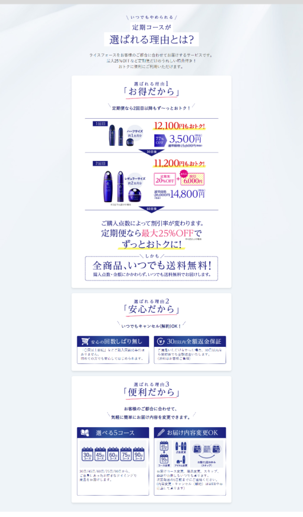 公式サイトから定期コースでライスフォースを購入するメリット